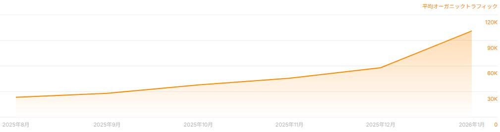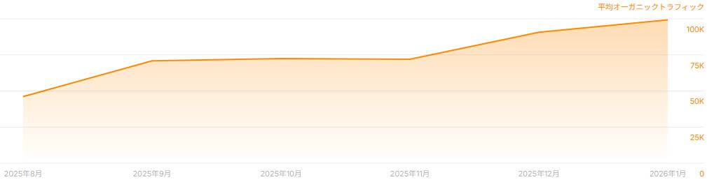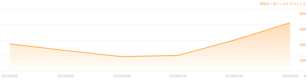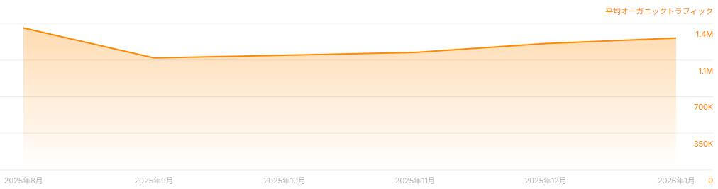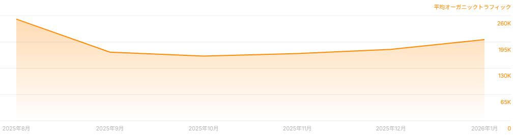 この動きから、評価される検索キーワードの入れ替わりが起きている可能性が考えられます。短期的な数値だけで判断せず、中長期的な推移を見ながら活用を検討したいサイトです。