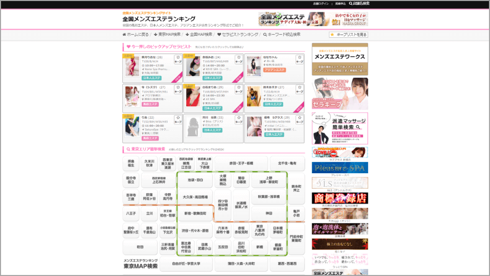 『全国メンズエステランキング』は、全国のメンズエステやアジアンエステ店を横断して紹介する老舗のランキングサイトです。
